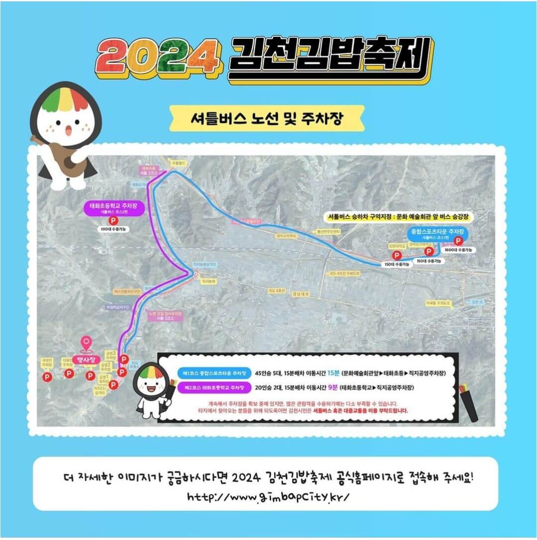▲위의 링크를 클릭하시면 '2024 김천 김밥축제' 셔틀버스 안내페이지로 이동합니다.