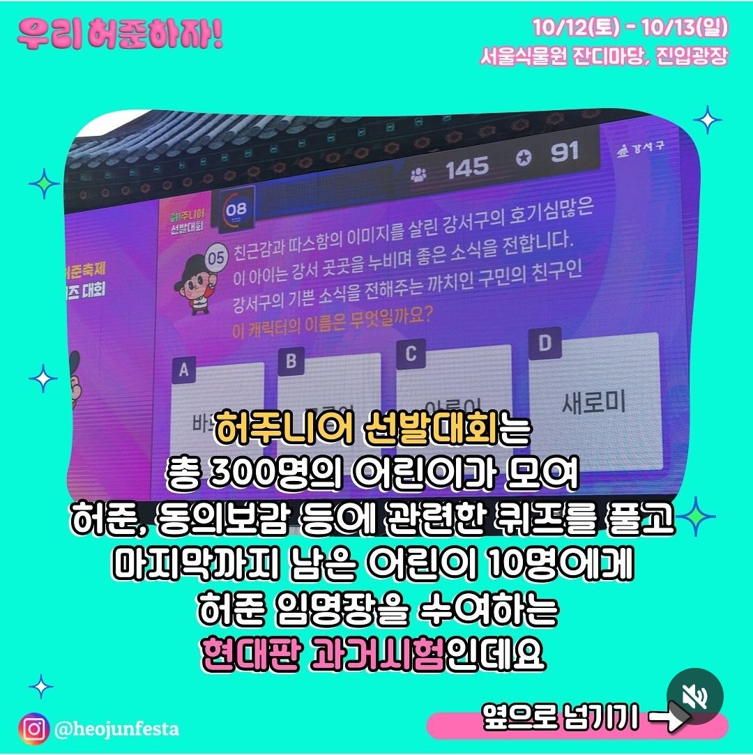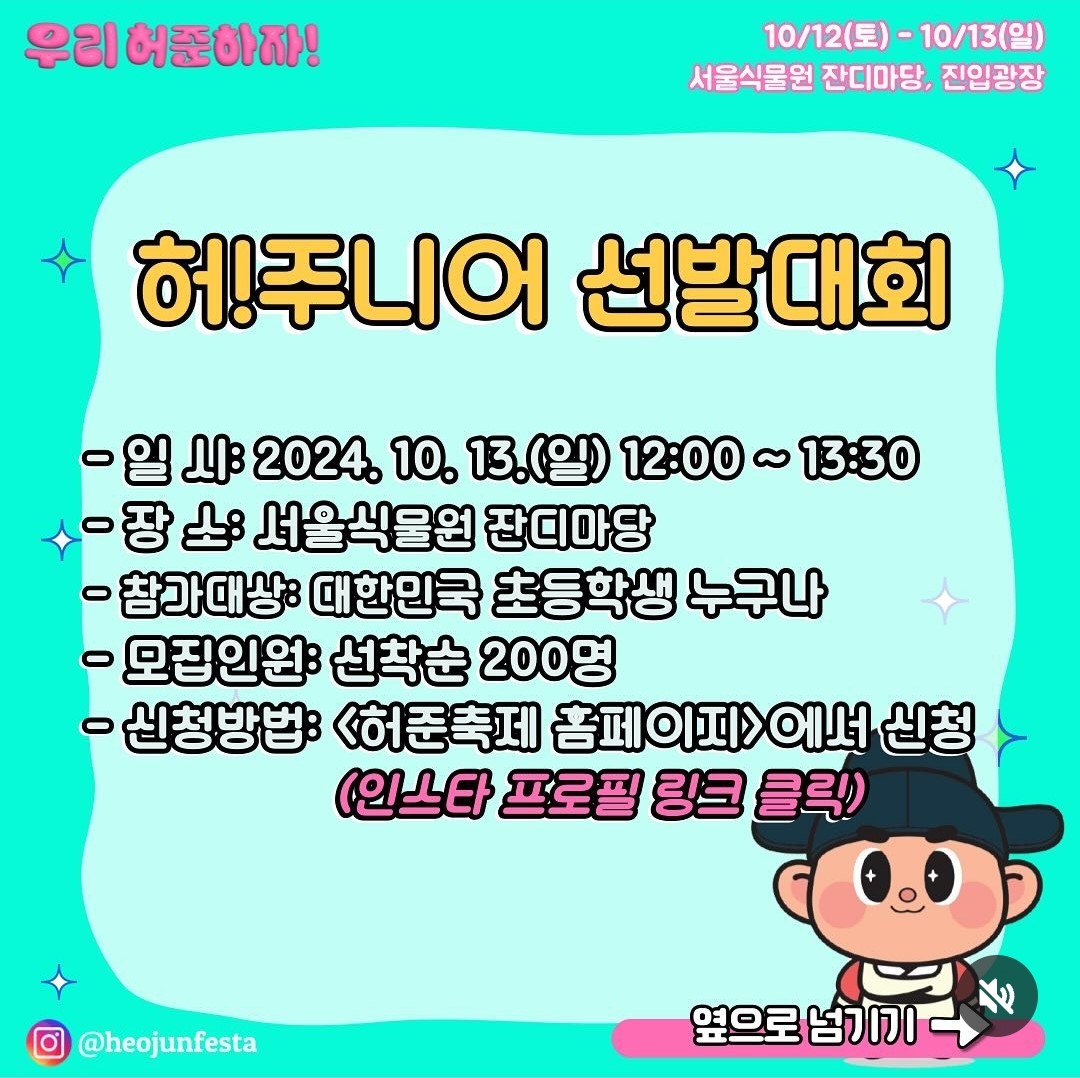 ▲위의 링크를 클릭하시면 '2024 허준축제 허주니어 선발대회' 신청 페이지로 이동합니다.